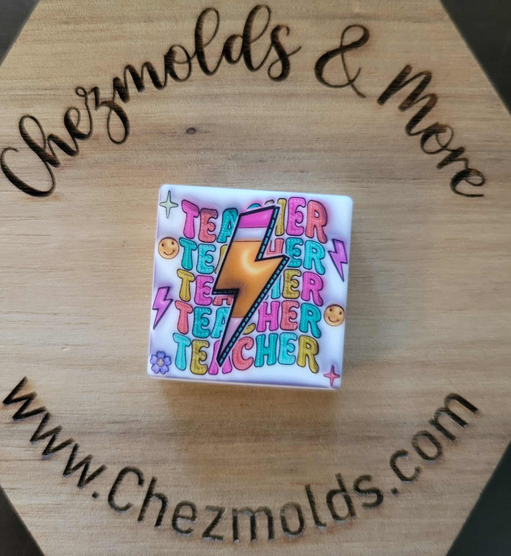 CE printed Silicone focal Bead-teacher square lightning pencil